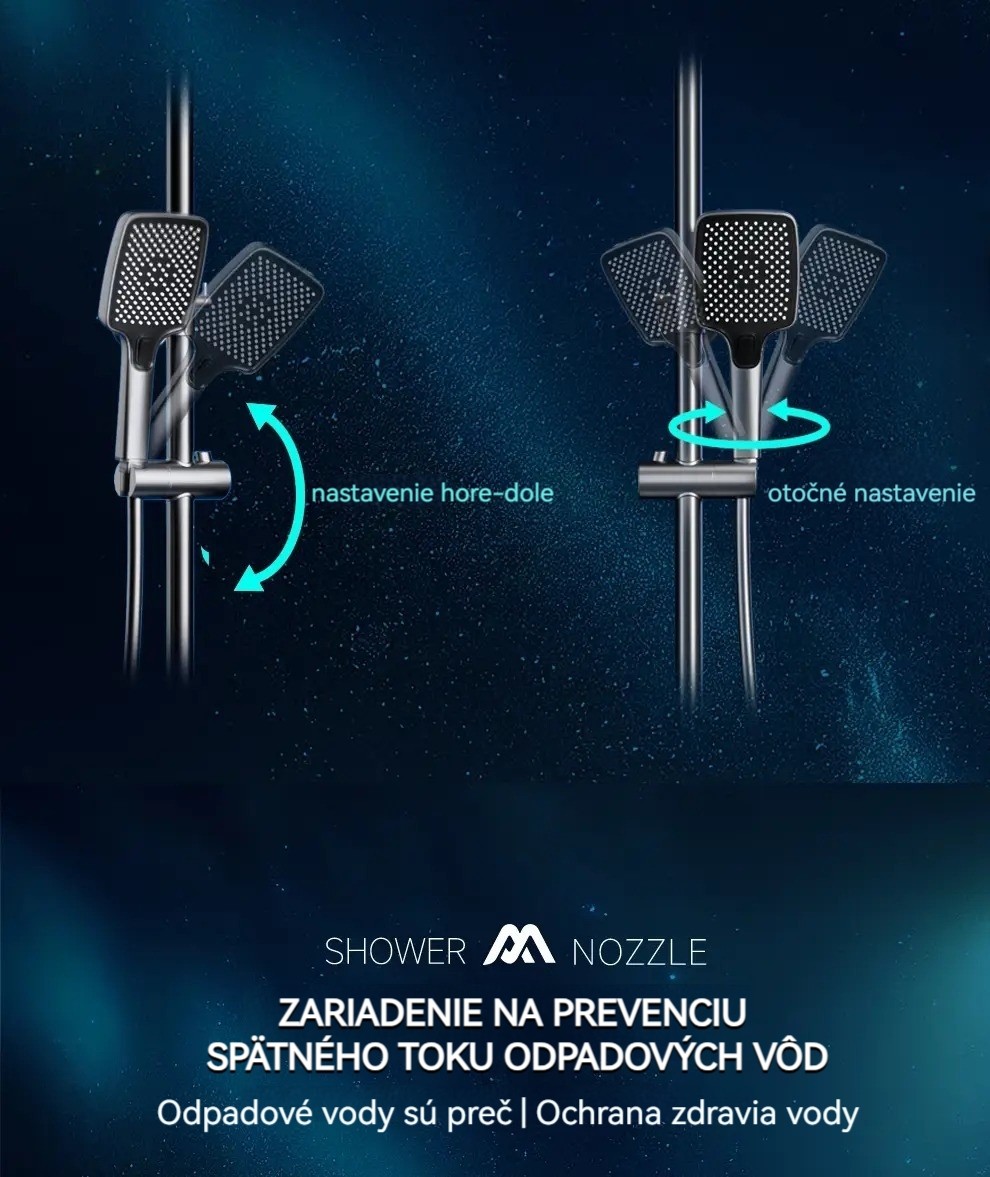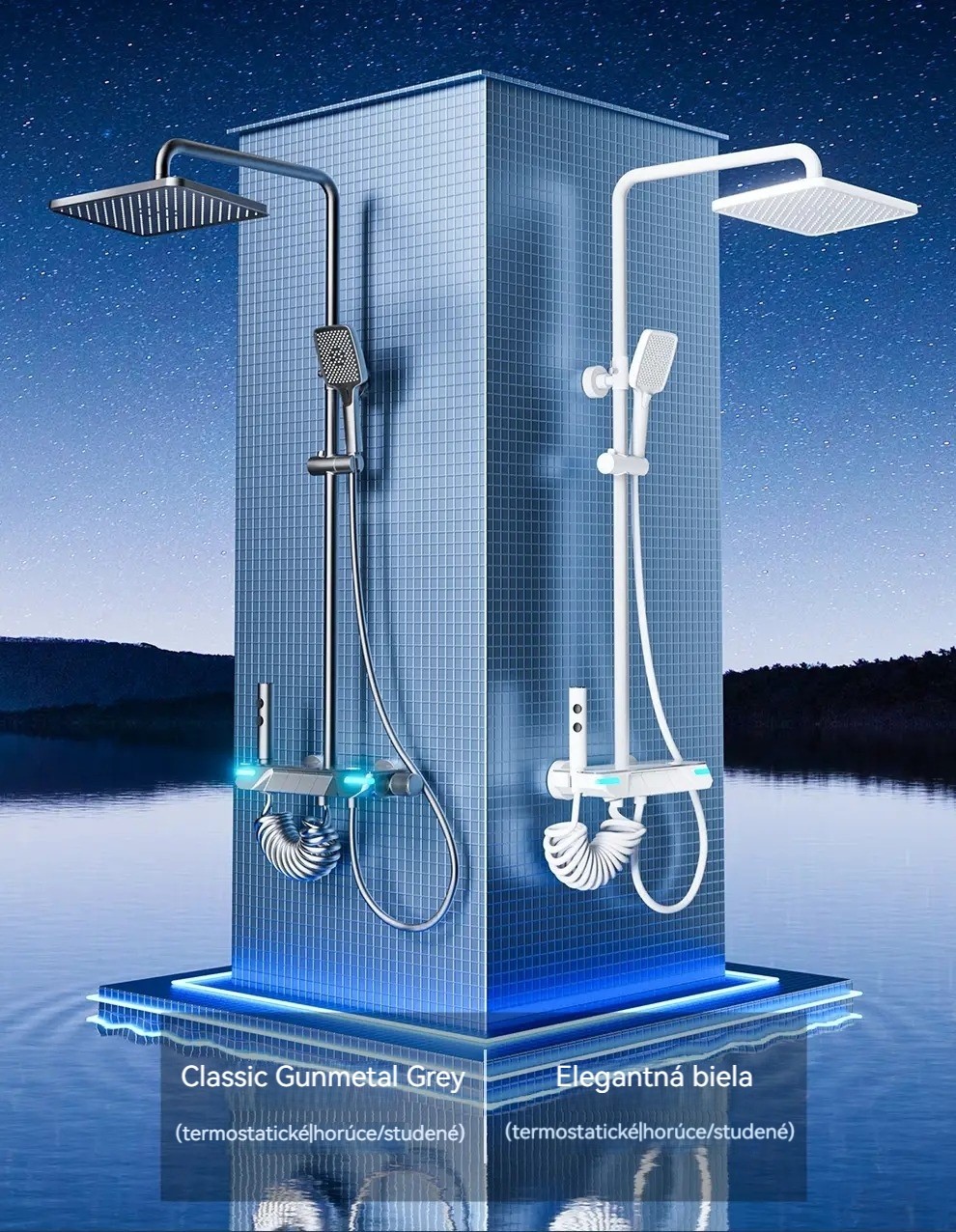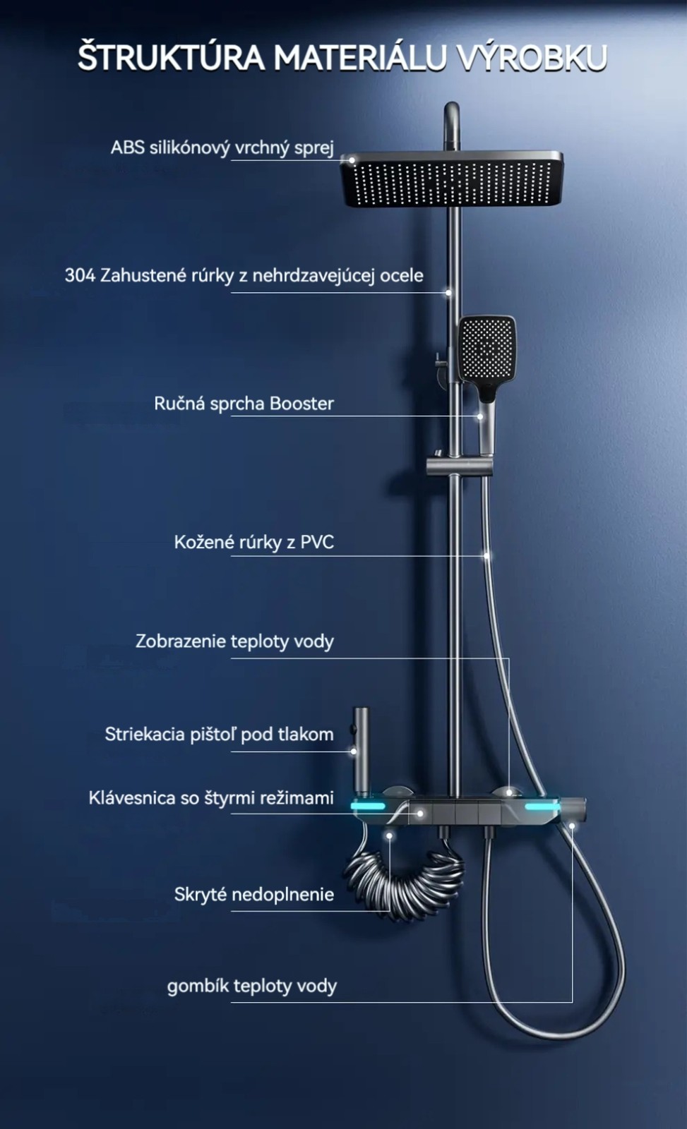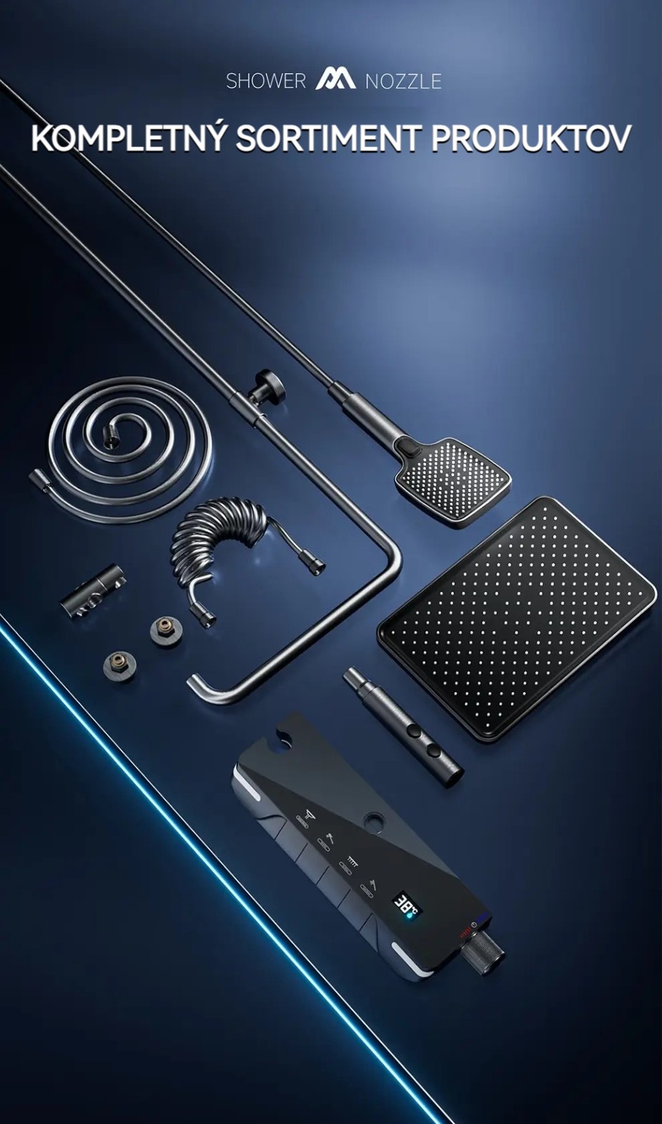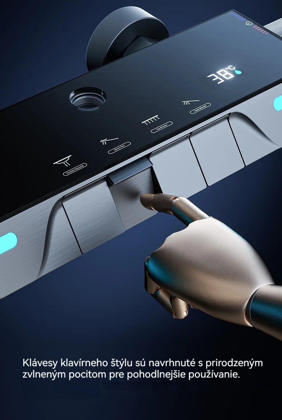 Šesťdielna sprchová súprava. Tento produkt s inteligentným termostatom s digitálnym displejom, hydraulickým napájaním, klavírnymi tlačidlami, mosadzným telom a štyrmi možnosťami nastavenia režimu sa dodáva do 24 hodín!